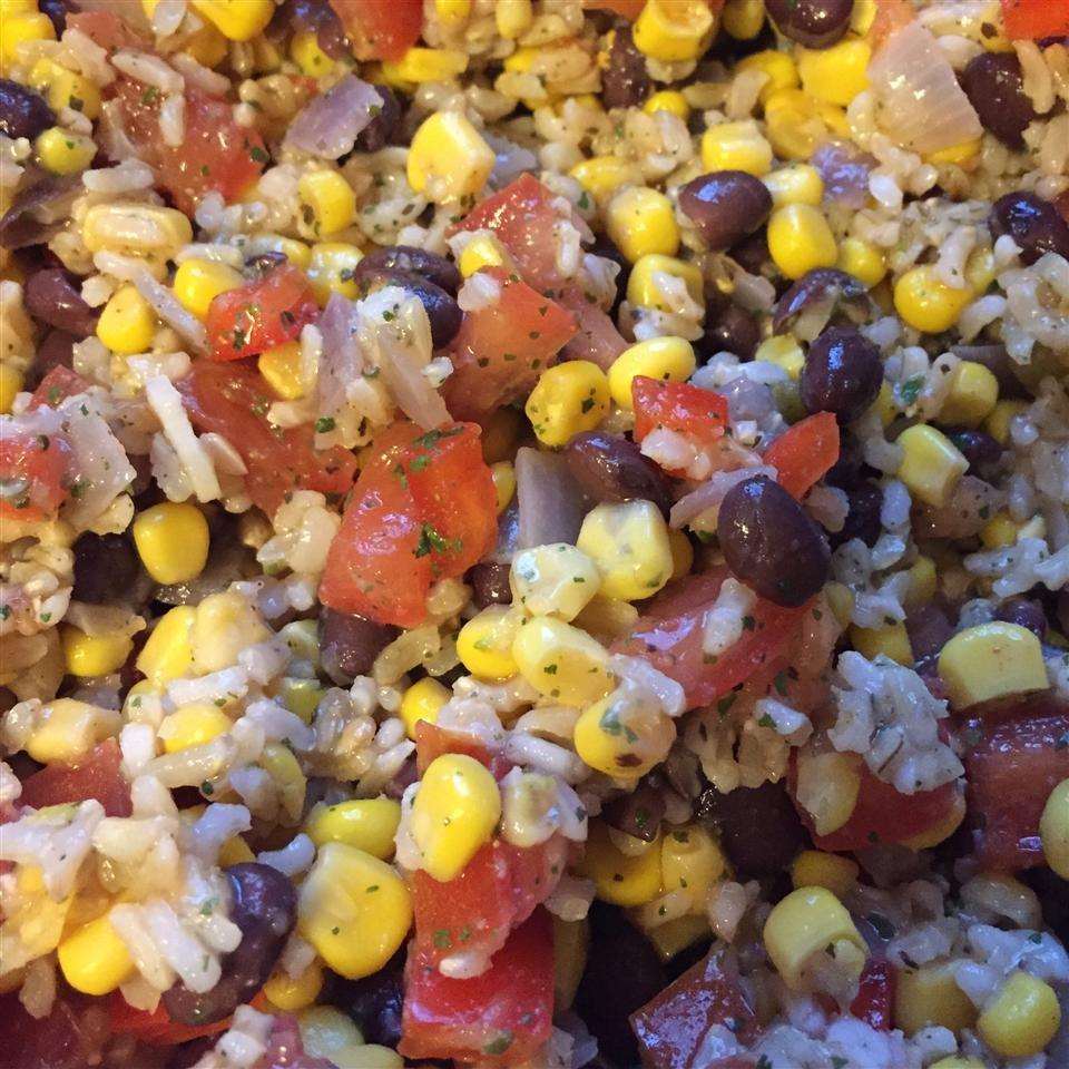 Ensalada de frijoles negros y arroz integral vegana