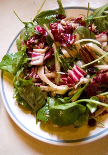 Ensalada vegana de hinojo, berros y arándanos
