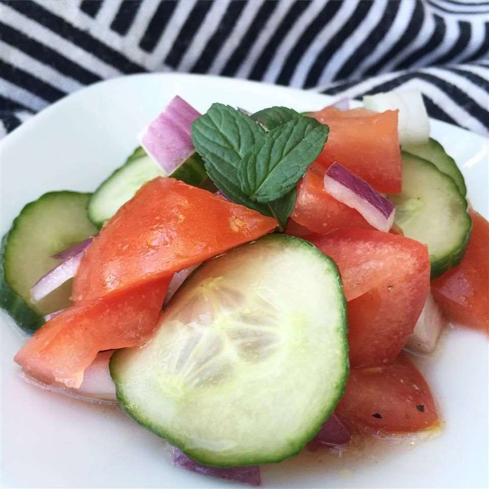 Ensalada vegana de tomate y pepino con menta