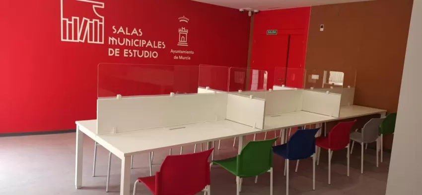 Actualmente, el municipio cuenta con 15 salas de estudio que ofrecen un total de 786 plazas (582 aplicando el 75% del control de aforo). Estas salas están ubicadas en Ronda Sur; Alquerías; Beniaján; Casillas; Cobatillas; Garres y Lages; Los Dolores; Los Martínez del Puerto; Rincón de Seca; Sangonera la Seca; Sangonera la Verde; Torreagüera; Zeneta; San José de la Vega; y Aljucer.
