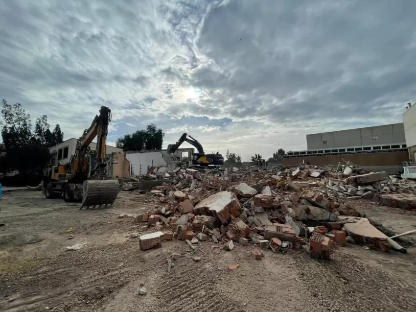 Para el derribo de las naves, cuyos trabajos se ha desarrollado durante una duración de dos semanas, se ha empleado maquinaria de gran tonelaje y se han transportado todos los escombros a vertedero de residuos inertes".