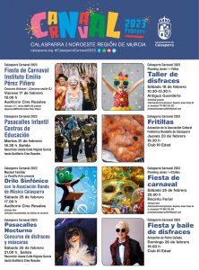 Cartel con la programación de actividades para el Carnaval de Calasparra 2023