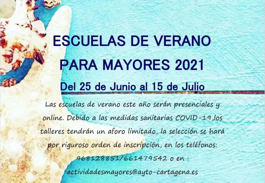 La Concejalía de Servicios Sociales del Ayuntamiento de Cartagena ha puesto en marcha de nuevo las Escuelas de Verano dirigidas a personas mayores, que se desarrollarán del 25 de junio al 15 de julio, en dos modalidades: presencial y online, según informaron fuentes municipales en un comunicado.