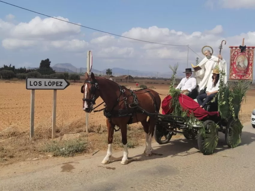 El santo hará una parada a las 12.30 horas en la localidad cartagenera de El Algar, donde hará una ofrenda a la patrona, la Virgen de los Llanos. García expone que, al igual que el año pasado, debido a la situación sanitaria, la popular romería se ha sustituido por esta rogativa.