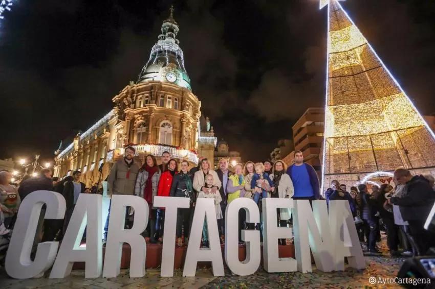 La Navidad ya está en Cartagena. Este sábado se ha procedido al encendido del Alumbrado navideño en las calles de la ciudad, en un acto multitudinario celebrado en la Plaza del Ayuntamiento.