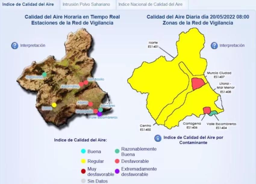 Según han informado fuentes municipales en un comunicado, en la estación de Mompeán, el promedio de 24 horas en dicha estación fue de 45 microgramos por metro cúbico de aire.