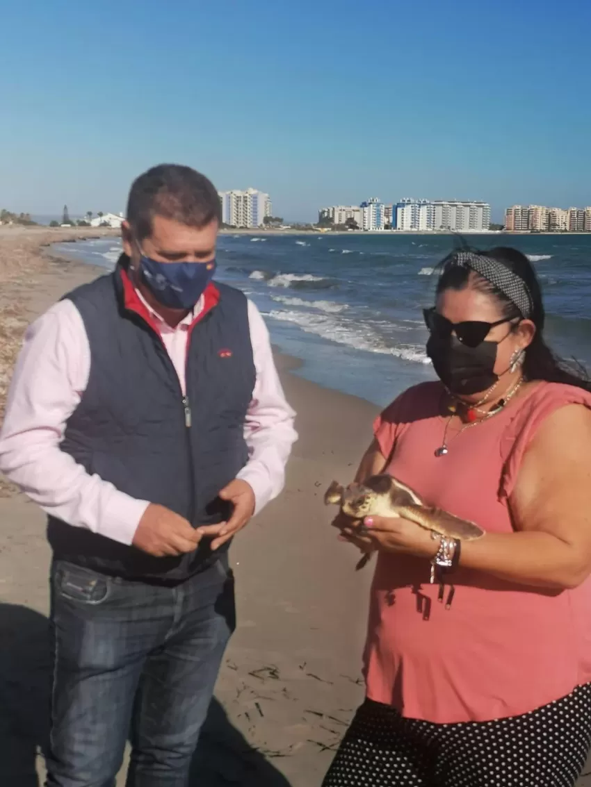 La Comunidad ha devuelto este miércoles al mar a cinco ejemplares de tortuga boba ('caretta caretta') en la playa de la Ensenada del Esparto, en La Manga, en San Javier, "que regresan de este modo a su lugar de nacimiento, ya que proceden de la segunda puesta de tortuga boba documentada en nuestra Región durante el verano de 2020 en esta misma playa", según ha indicado el director general del Medio Natural, Fulgencio Perona.
