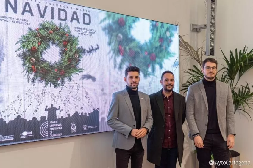 El concierto ha sido presentado este miércoles 21 de diciembre por el concejal del área de Cultura, David Martínez Noguera, el presidente de la Joven Orquesta Sinfónica de Cartagena (JOSCT), Álvaro Valdesueiro, y el director de la JOSCT, Álvaro Pintado.