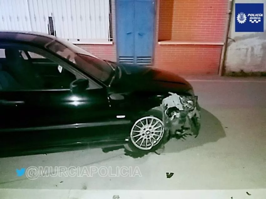 Agentes de la Policía Local de Murcia con base en El Palmar interceptaron el sábado por la noche a la conductora de un vehículo tras sufrir una colisión contra una farola en la pedanía de Ricón de Beniscornia.