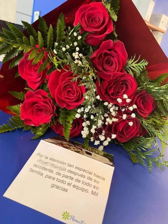 "Por la atención tan especial después de su accidente. De parte de toda su familia, para todo el equipo. Mil gracias", escriben en una carta adjunta. "Qué detalle más bonito", ha respondido la Policía Local en un mensaje sus redes sociales acompañado de una fotografía del ramo de flores en cuestión.