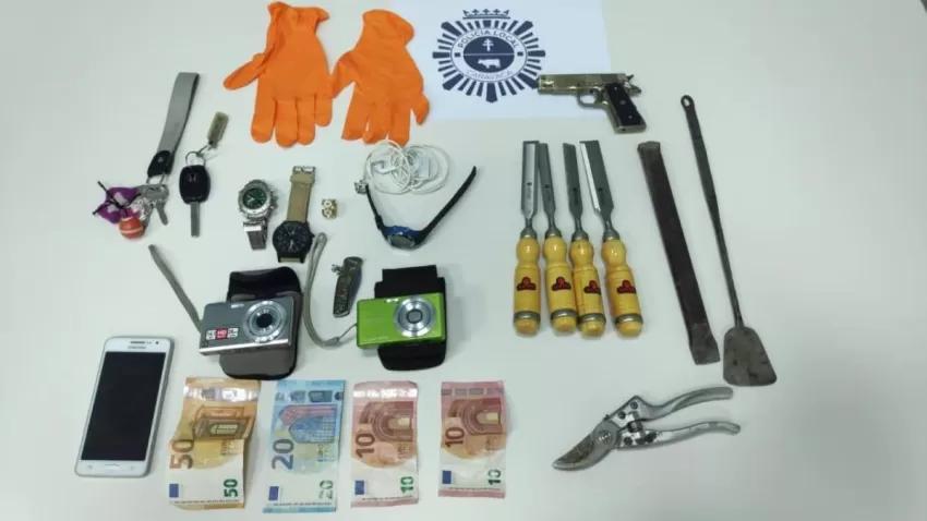 El detenido, que ha pasado a disposición judicial, portaba en el momento en el que fue sorprendido por los agentes, distintos objetos de valor sustraídos del citado domicilio, así como herramientas susceptibles de ser utilizadas para poder acceder con fuerza a inmuebles.