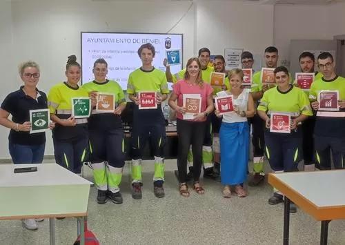 Los integrantes del Consejo Local de la Infancia y la Adolescencia, el alumnado del Programa Mixto de Empleo y Formación "Limpieza en espacios abiertos de Beniel" y los usuarios del servicio municipal de ocio y tiempo libre para personas con discapacidad "El Club" han celebrado en Beniel el Día Mundial de Acción por los ODS.