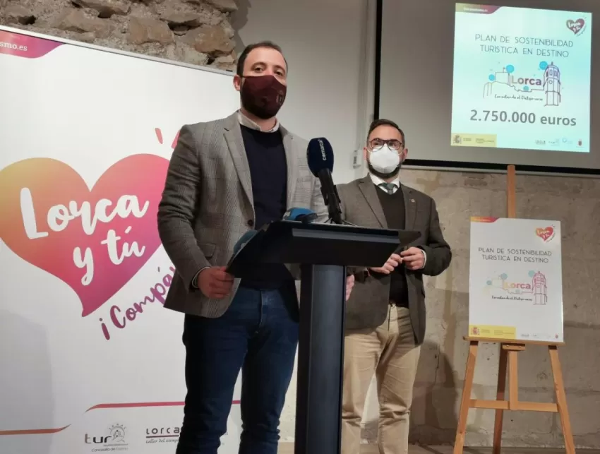 El alcalde de Lorca, Diego José Mateos, y el vicealcalde y concejal de Turismo, Francisco Morales, ha informado de que la concejalía de Turismo ha conseguido 2.750.000 euros para mejorar el atractivo turístico de Lorca.