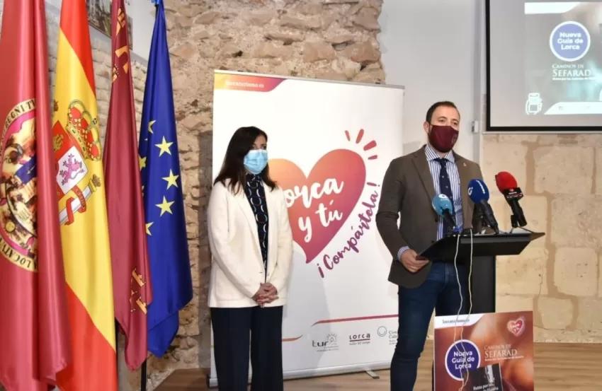 El vicealcalde de Lorca y concejal de Turismo, Francisco Morales, junto con la gerente de la Red de Juderías de España, Marta Puig, ha presentado la guía turística específica de 'Ruta por la Judería de Lorca' creada por la dicha red y el pasaporte 'Descubridores de Sefarad' destinado al turista atraído por el legado judío.
