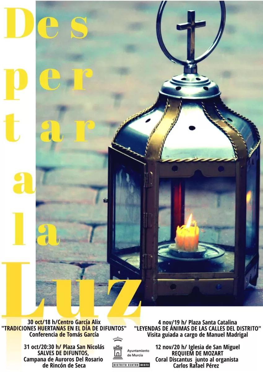Las actividades se celebrarán los días 30 y 31 de octubre y se retomarán tras el Día de Todos los Santos los días 4 y 12 de noviembre, con conferencias, visitas guiadas y cantos de los auroros. Se pondrá el broche final a esta primera edición con el concierto ‘Requiem de Mozart’ interpretado por la Coral Discantus en la Iglesia de San Miguel de Murcia.
