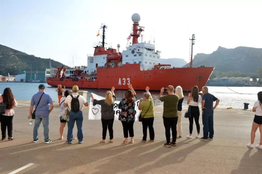 El buque de investigación oceanográfica (BIO) Hespérides ha recalado en el puerto de Cartagena a las 19.00 horas de ayer viernes, poniendo fin a un despliegue que comenzó el 16 de diciembre del pasado año. El acto de recibimiento ha sido presidido por el Almirante de Acción Marítima, vicealmirante Juan Luis Sobrino Pérez-Crespo.