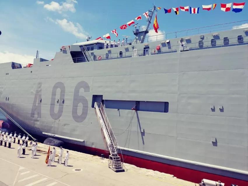 A continuación, ha tomado posesión del mando del BTL 'Ysabel' su comandante, el capitán de fragata Pedro Antonio Pérez Núñez, al que se le ha entregado la Bandera que fue izada en el buque con honores, salvas de ordenanza e interpretación del himno nacional por parte de la Unidad de Música del Tercio de Levante.