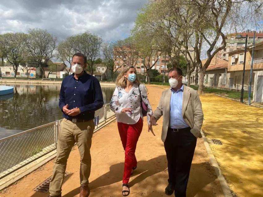 Los concejales del Partido Popular municipal José Guillén y Mercedes Bernabé, junto al presidente de la Junta Municipal del Infante, Antonio Ruiz, visitaron esta mañana este gran parque, caracterizado por su lago de 3.000 metros cuadrados, donde en los últimos meses se ha habilitado una nueva pista deportiva de 'running'.