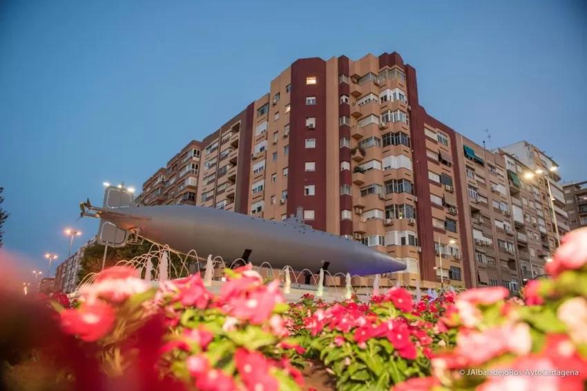 El Submarino del Paseo Alfonso XIII de Cartagena se iluminará durante la noche de este lunes de color rojo para conmemorar el Día Mundial del Donante de Sangre.