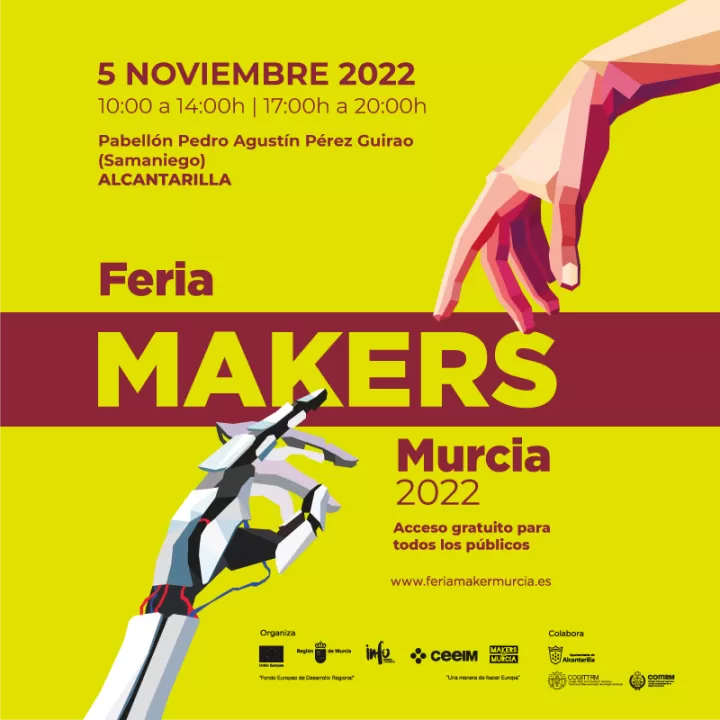 El encuentro anual de tecnología de última generación, realidad virtual, robótica e impresión 3D, la Feria Maker 2022, se celebra el próximo sábado, 5 de noviembre, en el pabellón Pedro Agustín Pérez Guirao de Alcantarilla, junto al colegio Samaniego.