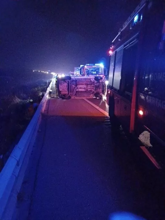 Servicios de emergencia han rescatado y trasladado al hospital a la conductora y única ocupante de un turismo que se ha salido de la vía y ha volcado en la autovía A-30, a la altura del kilómetro 184, en el término municipal de Cartagena (Murcia).