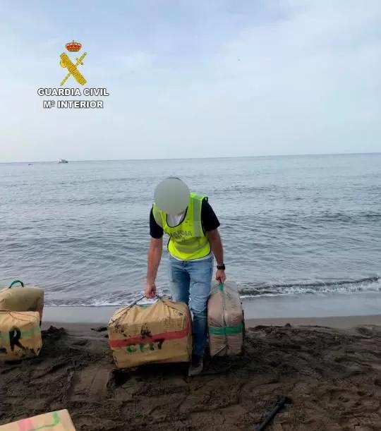 La Guardia Civil ha intervenido casi cinco toneladas de hachís en el momento en que estaban siendo introducidas en una cala de Lorca y ha detenido a cuatro integrantes de la organización criminal.