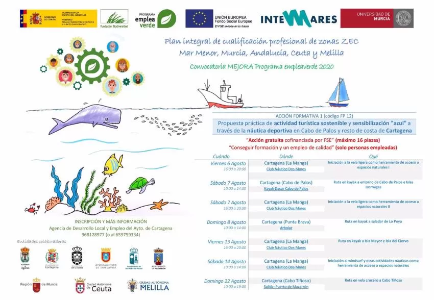 El número máximo de plazas es de 16 y entre las actividades a realizar destacan rutas en vela y kayac, e iniciación a deportes náuticos, entre otras. El curso se desarrollará del 6 al 22 de agosto, en La Manga, Cabo de Palos, Los Urrutias y Cabo Tiñoso.