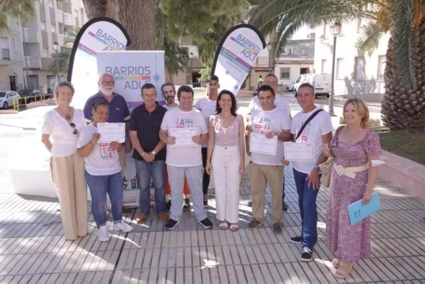 El programa Barrios ADLE en San Antón ha concluido este viernes, 15 de julio, con la entrega de diplomas a sus participantes. La concejala de Empleo del Ayuntamiento de Cartagena y presidenta de la ADLE, Irene Ruiz, ha participado en la clausura del programa, en el que ocho personas desempleadas del barrio han recibido formación tanto teórica como práctica en mantenimiento urbano.