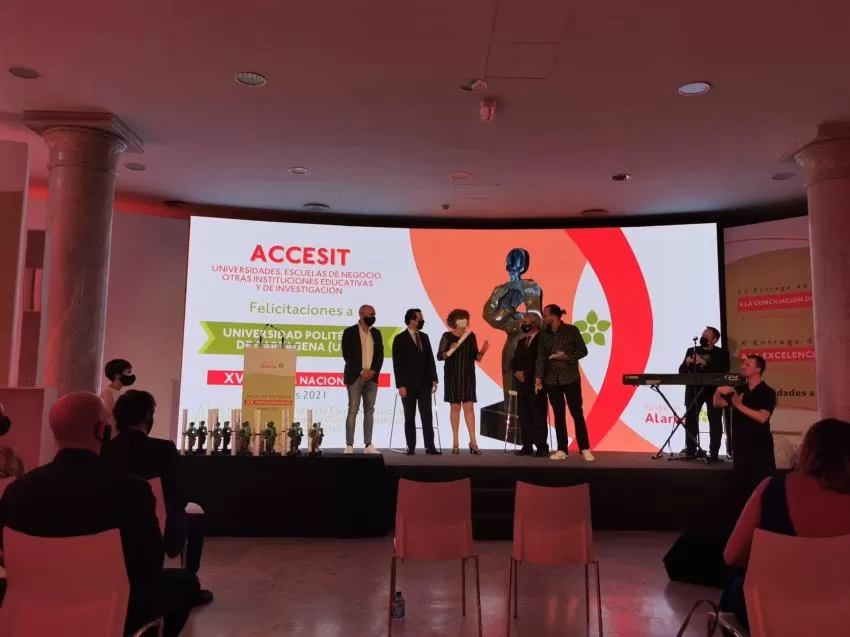 El proyecto UPCTcole de la Universidad Politécnica de Cartagena (UPCT) ha sido distinguido con un accésit en los Premios Alares de Conciliación, que se entregaron anoche. Los Premios Alares 2021 han contado con la presidencia de los Reyes de España y se han celebrado, en formato semipresencial, en el Palacio de Neptuno de Madrid.