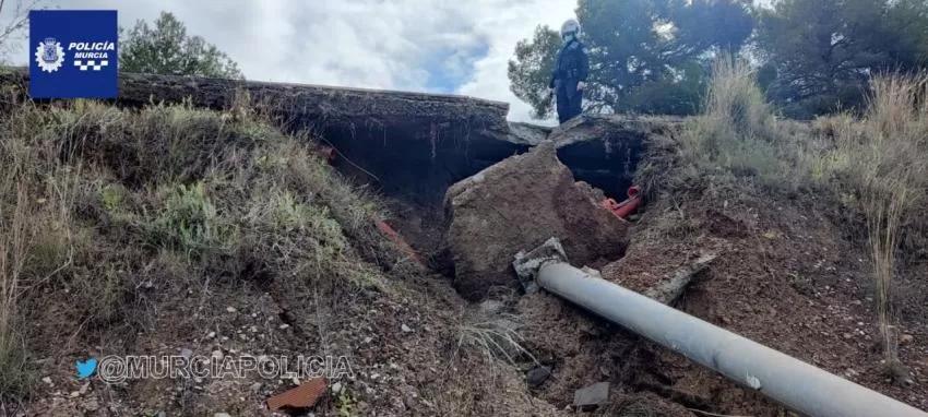 Las precipitaciones han hundido parte de la calzada que cruza una rambla en la Avenida Majal Blanco, en la urbanización Torre Guil, dentro del término municipal de Murcia, según han informado fuentes de la Policía Local.