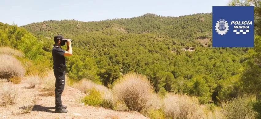 La Policía Local de Murcia, a través de la Patrulla Ecológica, está hoy controlando con dron los accesos al Valle y Carrascoy, cerrados durante el episodio de calor.
