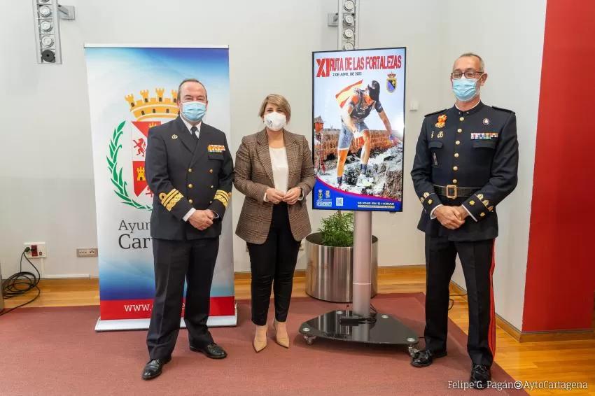 La Ruta de las Fortalezas, una de las citas más importantes del calendario nacional de ultratrail, volverá a celebrarse el próximo 2 de abril en Cartagena, según ha anunciado la alcaldesa, Noelia Arroyo, acompañada del almirante de Acción Marítima (Almart), Juan Luis Sobrino, y el teniente coronel Miguel Gallardo, jefe de estudios de la Escuela de Infantería Albacete y Fuster.