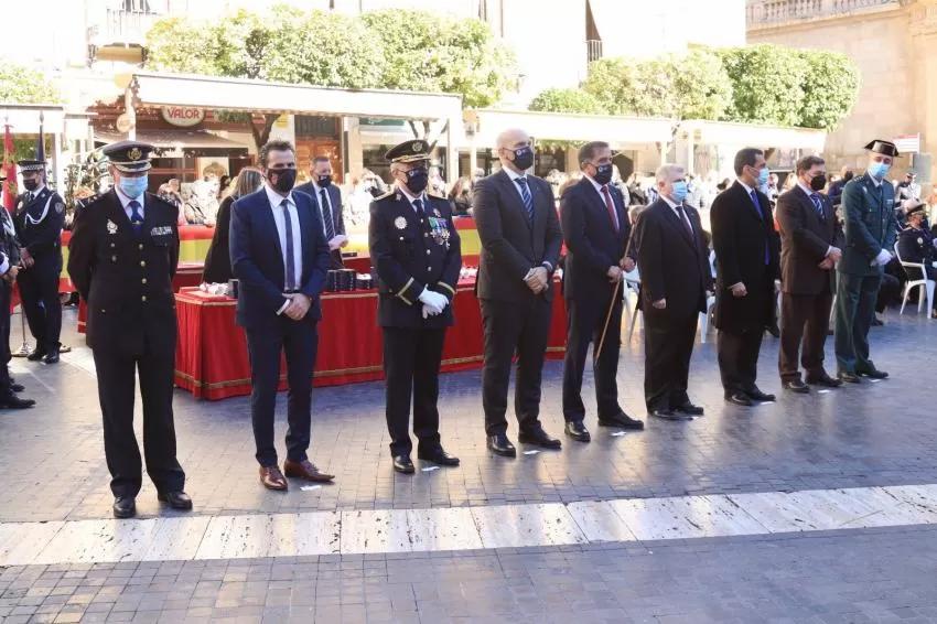 Igualmente, para reconocer los méritos de aquellos funcionarios que han sobresalido notoriamente en el cumplimiento del servicio a lo largo del año, se ha otorgado una Felicitación Personal Pública a 48 agentes de la Policía Local. Tras la entrega de las insignias se llevó a cabo el acto de Homenaje a los Caídos en la Plaza del Cardenal Belluga.