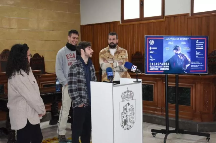 El concejal de cultura, Antonio Merino, presentó en el Ayuntamiento de Calasparra y rodeado del elenco de actores de la obra, una versión onírica del clásico de Calderón inspirada en el surrealismo y el barroco para crear una puesta en escena única de "La vida es sueño". Una pieza teatral creada por dos jóvenes compañías de la escena regional: Cía Aves Truz y Cía Agosto del 36.