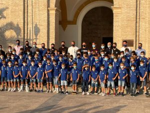 Ambos clubes por separado han celebrado una misa y se han encontrado brevemente en la Plaza de San Juan Pablo II, en la entrada del Templo, para realizar una foto histórica por este encuentro, que es la primera vez que se realiza y que ha reunido a cerca de 200 chavales de entre 6 y 17 años.