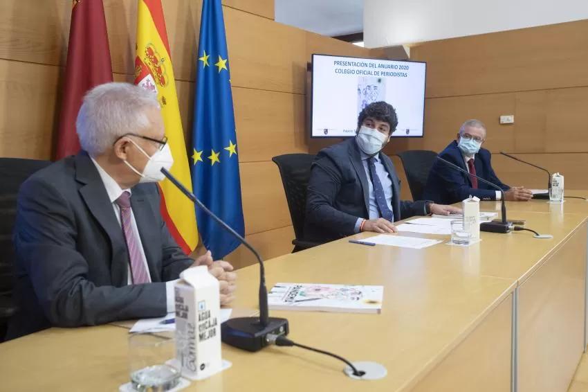 El jefe del Ejecutivo regional, Fernando López Miras, destacó hoy el papel “fundamental” de los periodistas y los profesionales de los medios de comunicación durante la pandemia. Afirmó que ese rol “sigue siendo clave hoy”. Con motivo de la presentación del anuario 2020 del Colegio Oficial de Periodistas de la Región de Murcia. López Miras señaló que “2020 fue un año muy duro y que recordaremos siempre, con historias personales y vivencias que pudimos conocer día a día gracias a que periódicos, radios o televisiones siguieron trabajando y dando un ejemplo de profesionalidad”.