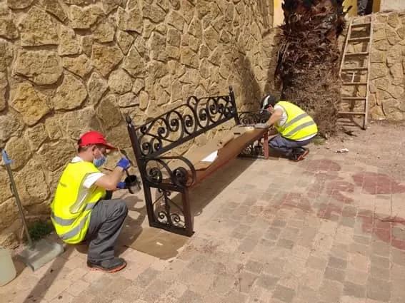 Casalduero Jódar ha indicado que "concretamente, los beneficiarios de este programa de formación han comenzado eliminando pintadas de paredes y están llevando a cabo el repintando de muros, así como del mobiliario urbano tal como bolardos, barandas, verjas, bancos y farolas".