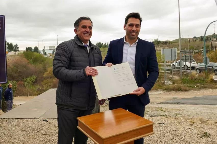 Los alcaldes de Murcia, José Antonio Serrano, y Las Torres de Cotillas, Francisco Jesús López, han firmado un convenio de colaboración para llevar a cabo las obras de ejecución del puente en la carretera N-344 sobre la Rambla Salada.