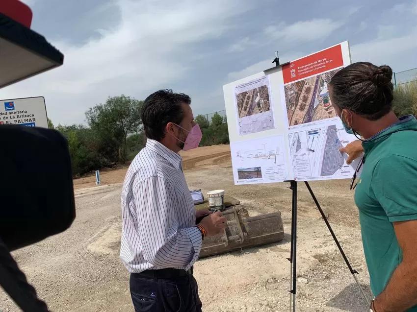 El vicealcalde y concejal de Infraestructuras, Contratación y Fomento del Ayuntamiento de Murcia, Mario Gómez, ha visitado este mediodía las obras que se están llevando a cabo para la construcción del futuro aparcamiento público disuasorio 'La Rueda' de La Alberca, situado junto al junto al campo de fútbol de esta pedanía, cuyas obras finalizarán el próximo otoño.