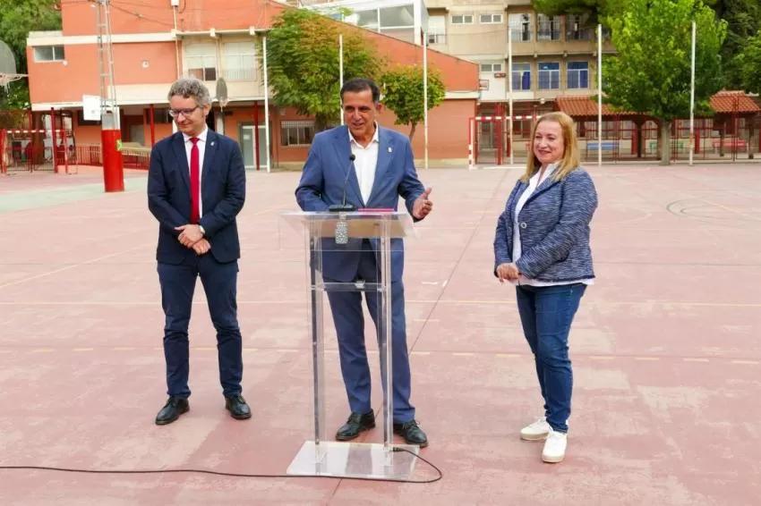 El alcalde, José Antonio Serrano, acompañado por el concejal de Educación, Antonio Benito, ha visitado este lunes el Colegio de Educación Infantil y Primaria Mariano Aroca, en el Infante, para presentar la iniciativa.