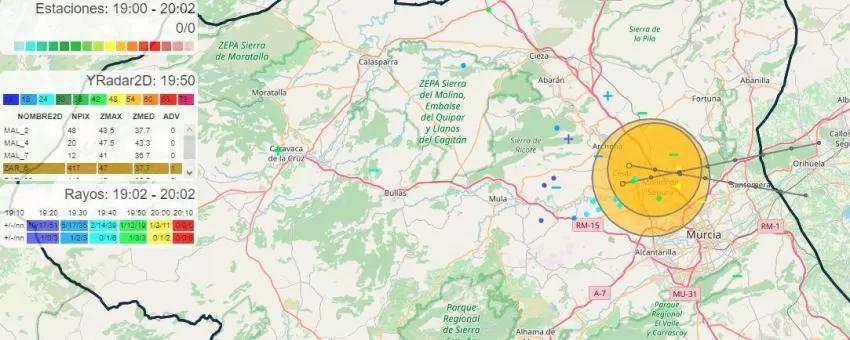El Ayuntamiento de Murcia ha activado el dispositivo especial ante el aviso naranja por lluvia decretado por la AEMET en el que se anuncian lluvias para esta noche que pueden alcanzar los 30 mm en una hora y amarillo para mañana martes y el miércoles con lluvias de hasta 20 mm.