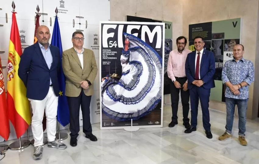 Murcia celebra del 12 al 15 de julio el Festival Internacional de Folklore en el Mediterráneo. Diez grupos participantes se darán cita en la 54 edición de un certamen que ha sido presentado este viernes en la Sala de Corregidores del Ayuntamiento de Murcia, según informaron fuentes del Consistorio en un comunicado.