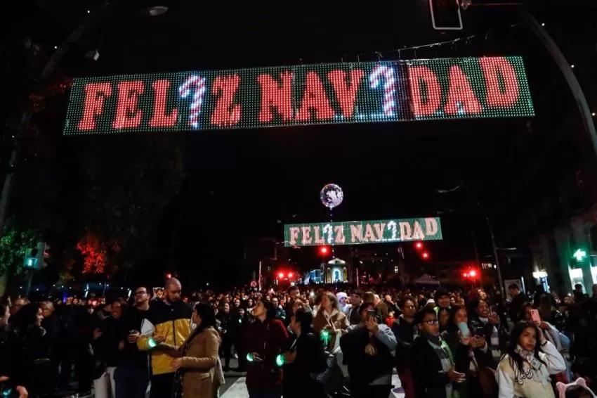 La calle Cruz Conde es el epicentro de la Navidad cordobesa, en la que se ha instalado un enorme medio arco de luz y sonido de casi 380 metros de longitud, con espectáculos de música y sonido varias veces al día.