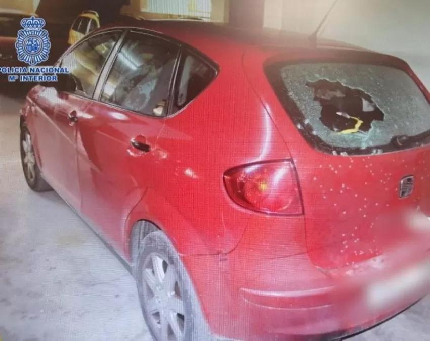 La ventanilla trasera del vehículo presentaba varios impactos de perdigones cuando los agentes llegaron al lugar.