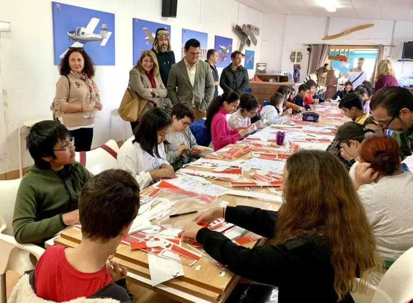 Unos 50 niños, alumnos de los colegios “La Paz”, “Fulgencio Ruiz”, “Severo Ochoa” y “El Mirador”, han vivido hoy una de las primeras jornadas del programa educativo “Pioneros de la Aviación”, en el aeródromo Los Garranchos, de San Javier, coincidiendo con la celebración del Día Internacional de la Aviación Civil. Los niños se han dividido en dos grupos y han disfrutado de teatro infantil, la exposición “Alas de Genio”, dedicada al autogiro de Juan de la Cierva, además de elaborar su propia maqueta de un avión que se han llevado a casa y de conocer de cerca los ultraligeros y su funcionamiento, explicado por personal del aeroclub, que atendió a los niños a lo largo de la mañana.