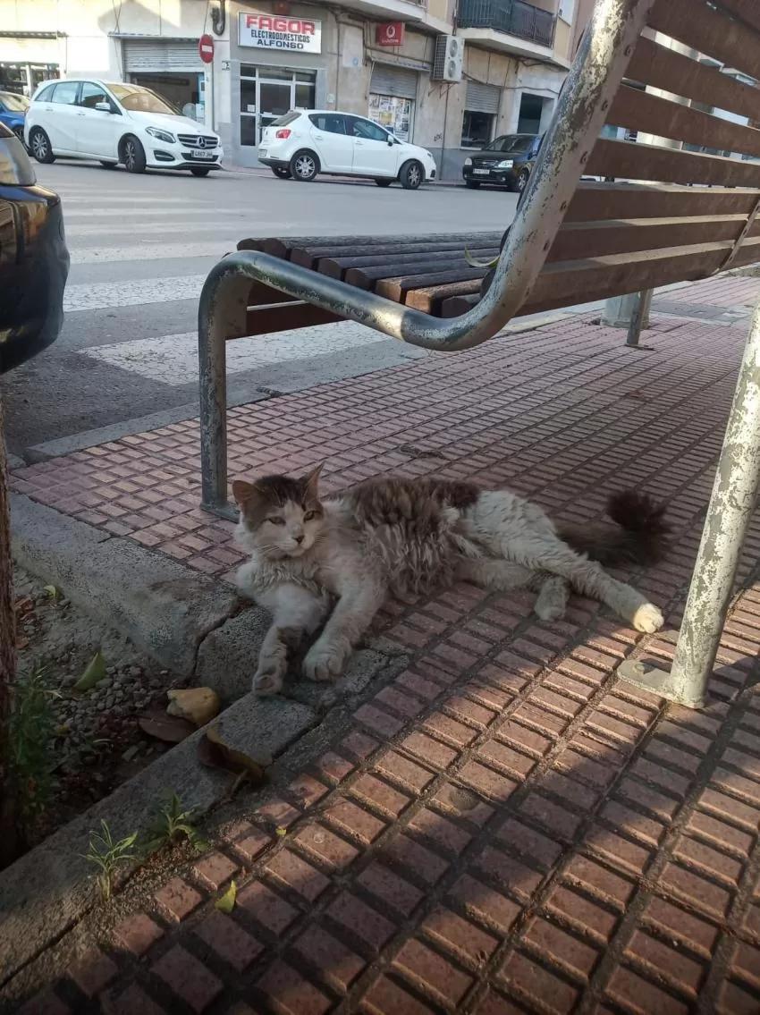 Es un gato de pelo largo muy tranquilo y sociable al ser de casa, confiesan los que lo ven habitualmente. Está muy sucio y lleva todo el cuello pelado debido a una supuesta sarna ,pulgas o ácaros. Se necesita casa de acogida urgente es muy mayor para estar en la calle con estas temperaturas extremas.
