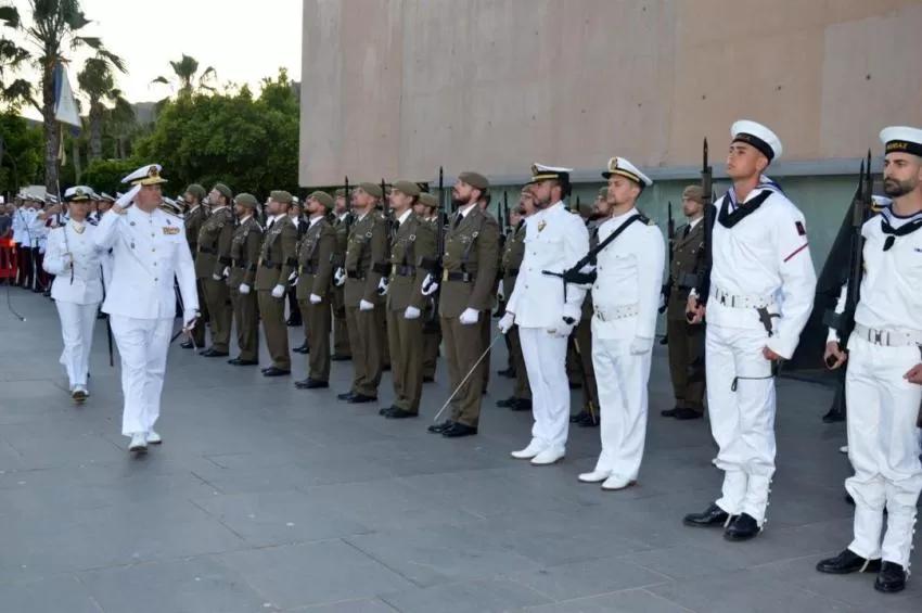 A continuación, en las inmediaciones del Museo Nacional de Arqueología Subacuática (ARQVA) se ha realizado un solemne arriado de Bandera conjunto. El acto ha sido presidido por el Almirante de Acción Marítima, vicealmirante Juan Luis Sobrino Pérez-Crespo, que ha estado acompañado por la Alcaldesa de Cartagena, Noelia Arroyo Hernández y del Almirante Jefe del Arsenal de Cartagena, vicealmirante Pedro Luis de la Puente García-Ganges, entre otras autoridades civiles y militares.