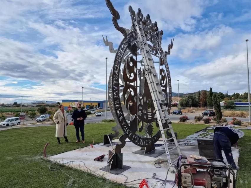 El alcalde de Lorca ha explicado que estos trabajos están consistiendo en la instalación de un escudo municipal de Lorca en la glorieta, ubicada en la N-340, que supone un punto estratégico de entrada a la ciudad.