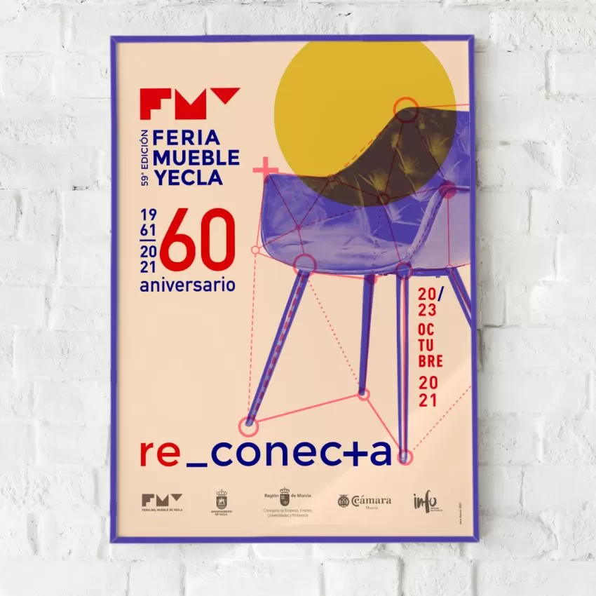 En esta ocasión, la Feria del Mueble de Yecla cuenta con un cartel anunciador obra del diseñador José Azorín, quien desarrolla ese concepto de “volver a establecer una comunicación física tras todos estos meses de aislamiento”, una idea que está muy presente en esta nueva edición de la feria, que cumple 60 años (1961-2021) siendo un referente nacional para el sector del mueble y la madera.