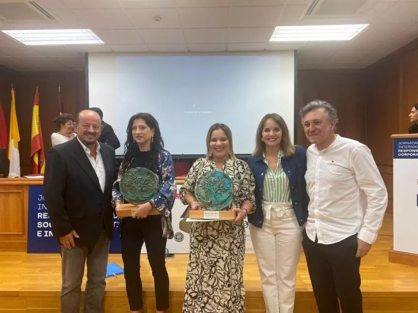 El acto ha tenido lugar durante las 'Jornadas Internacionales sobre RSC e Industria 4.0', organizadas por la Cátedra Internacional de Responsabilidad Social de la UCAM, que dirige Víctor Meseguer. Los galardones han sido entregados por Gema Alcázar y Reyes Samper, socias fundadoras de Circular Economy Consulting y promotoras de la Cátedra de Economía Circular y RSC de la Católica.